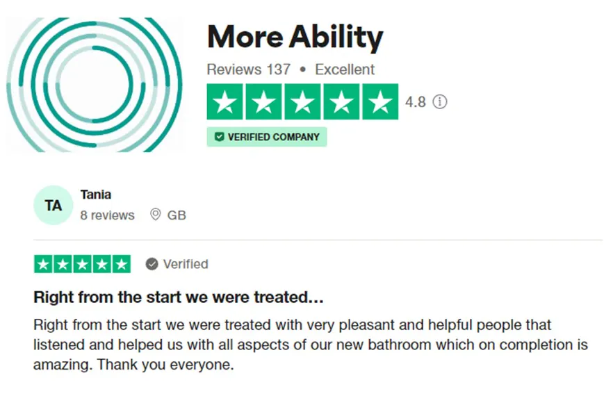"Right from the start, we were treated with very pleasant and helpful people that listened and helped us with all aspects of our new bathroom, which on completion is amazing. Thank you, everyone."