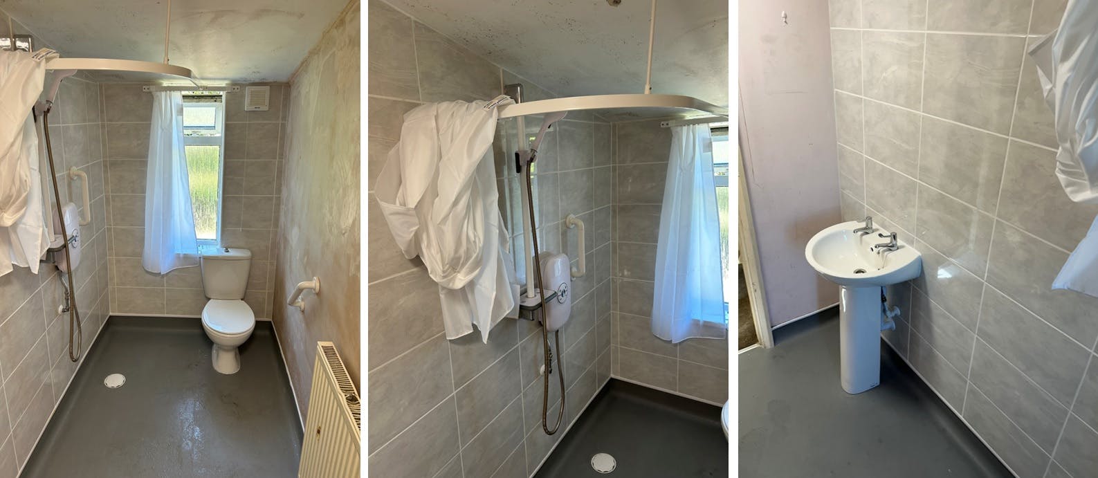 To protect the user from temperature fluctuations, an electric thermostatically controlled shower was installed—ensuring consistent, safe water temperatures. A shower curtain was added to provide privacy and maintain warmth during use.